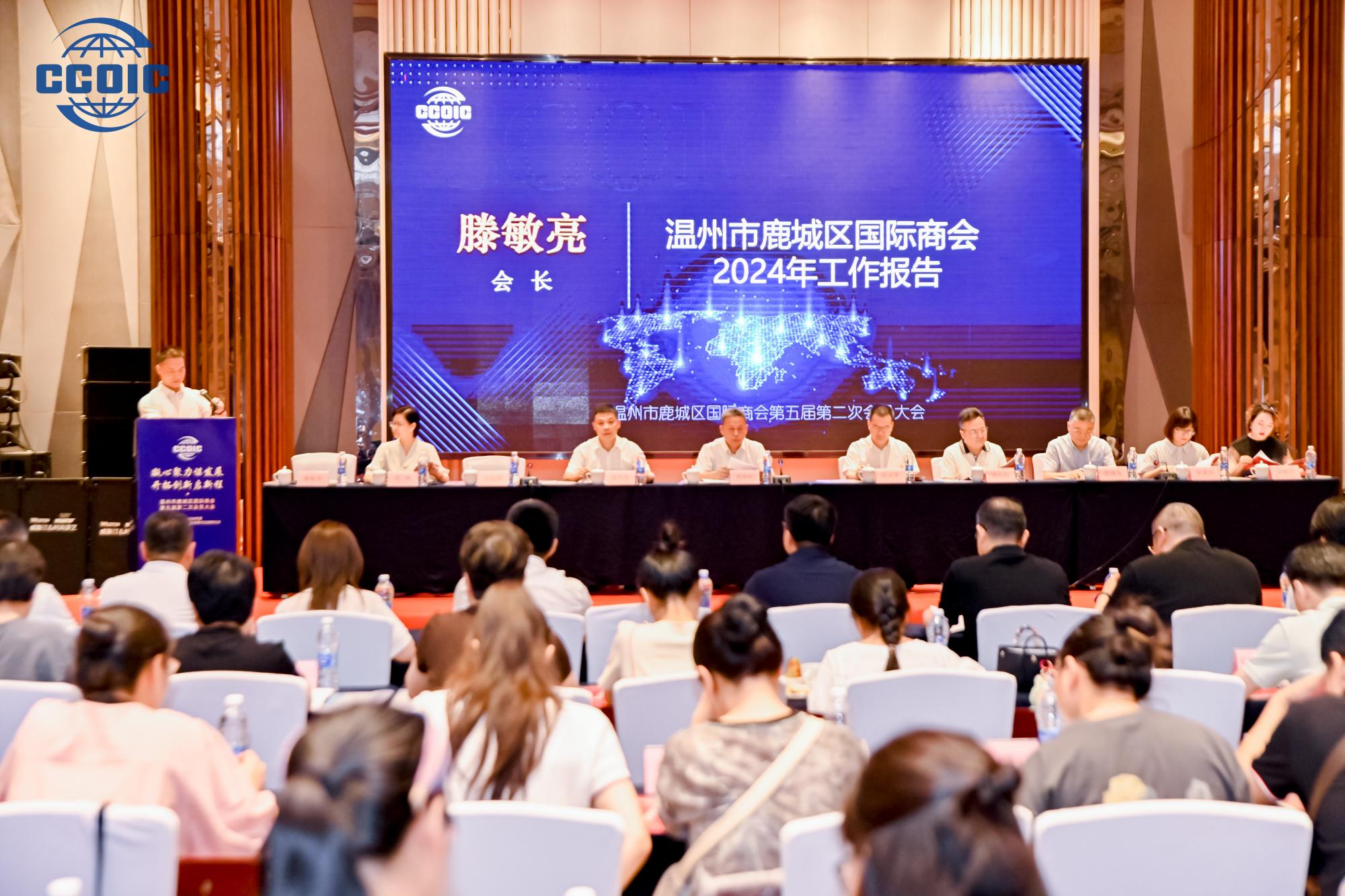 董事长滕敏亮作为鹿城国际商会会长,宣读了2024年度鹿城国际商会工作报告。 并为鹿城国际商会市场采购贸易分会的成立、金融顾问的设立以及获奖企业进行了授牌仪式。 特别值得一提的是, “鹿城对外贸易信用企业”标志是由温州市海关、温州市税务局等十个重要部门联合颁发的,对于出口和贸易型企业来说,这一荣誉具有极高的含金量。