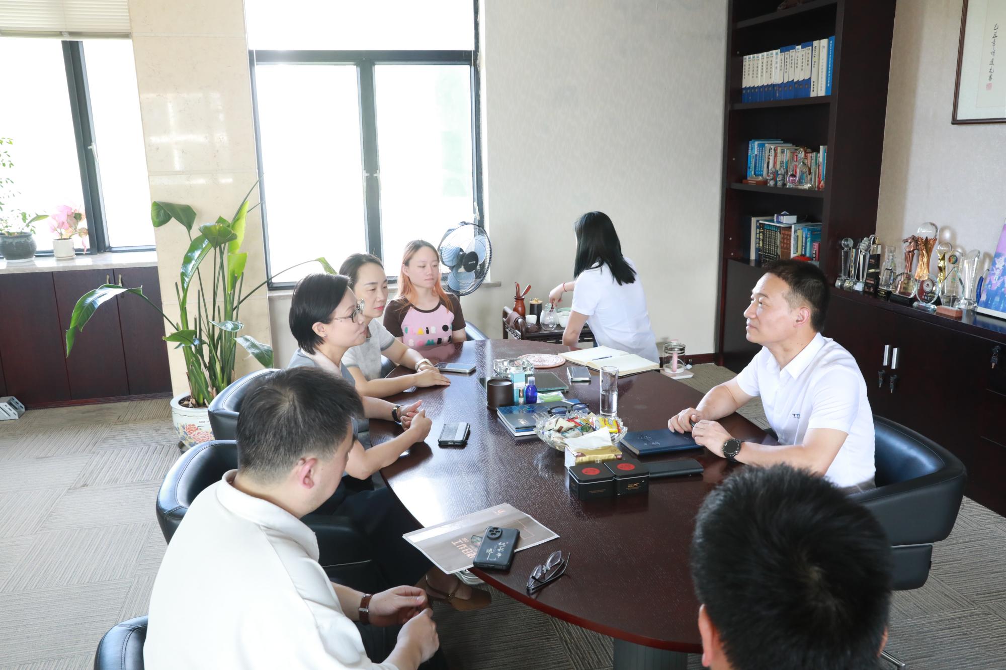 董事长滕敏亮足迹陈书记一行参观公司展厅,介绍公司自1994年以来的发展历程。公司从最初的外加工小厂发展成为遍布全球的新能源产业国际化集团, 每一步都凝聚创新与奋斗汗水。 针对陈书记此次访问目的,董事长滕敏亮在企业生产经营、产品研发、项目建设及产业投资等方面提出相关想法和建议,希望帮助更多企业解困解难。