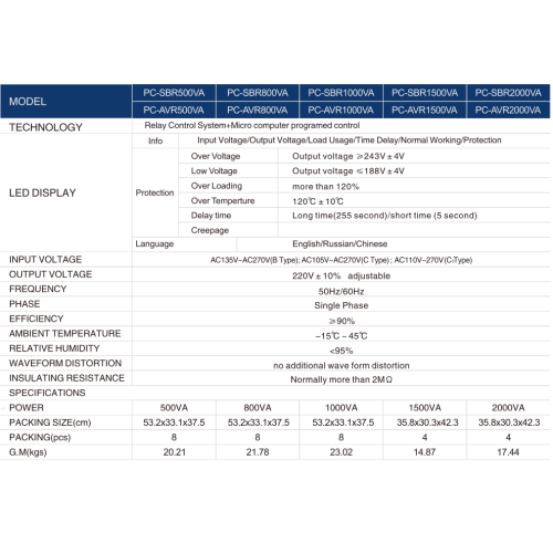 | PC-AVR500VA | PC-AVR1000VA | PC-AVR1500VA | PC-AVR2000VA |