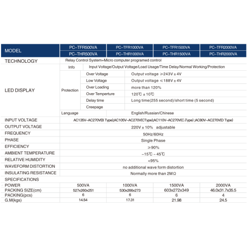 | PC-TFR500VA | PC-TFR1000VA | PC-TFR1500VA | PC-TFR2000VA |