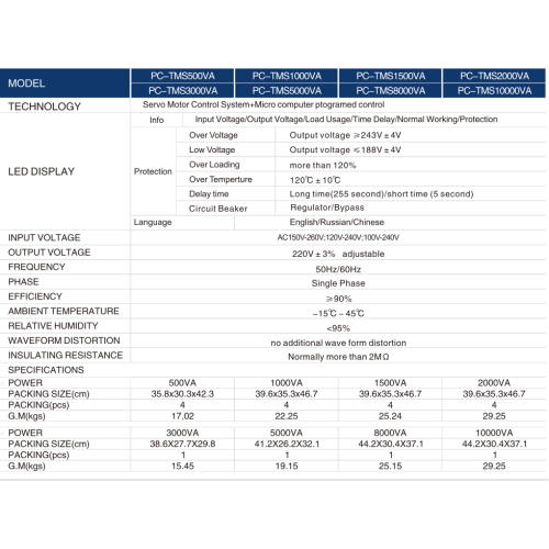 | PC-TMSC500VA | PC-TMS1000VA | PC-TMS1500VA | PC-TMS2000VA | PC-TMS3000VA | PC-TMS5000VA | PC-TMS8000VA | PC-TMS10000VA |