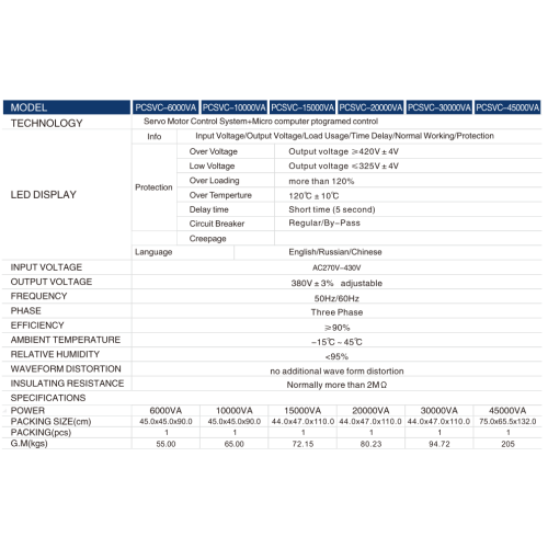 | PC-SVC16000VA | PC-SVC10000VA | PC-SVC15000VA | PC-SVC20000VA | PC-SVC30000VA | PC-SVC45000VA |