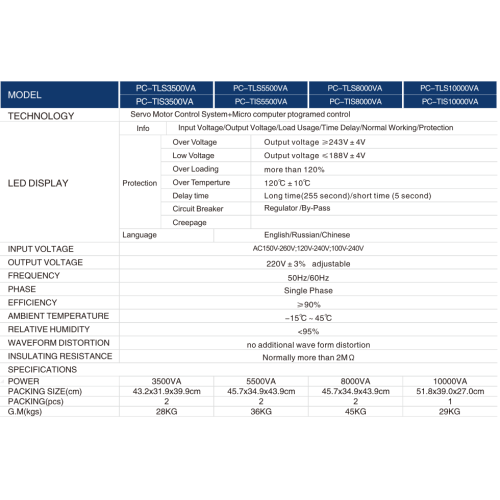 | PC-TLS500VA | PC-TLS1000VA | PC-TLS1500VA | PC-TLS2000VA | PC-TLS3000VA | PC-TLS5000VA | PC-TLS8000VA | PC-TLS10000VA |