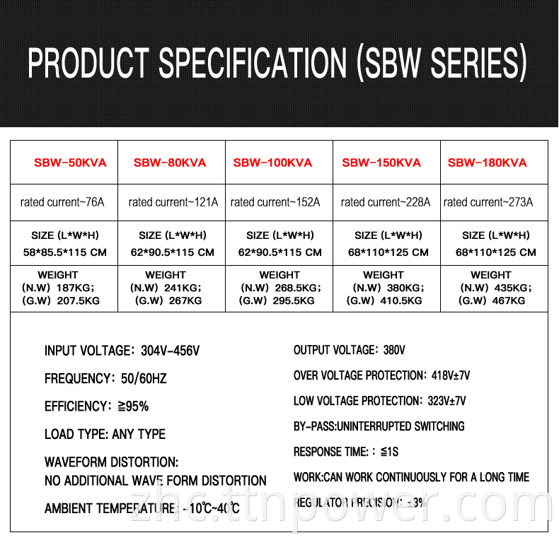 | SBW-50KVA | SBW-80KVA | SBW-100KVA | SBW-150KVA | SBW-180KVA | SBW-200KVA | SBW-250KVA | SBW-320KVA | SBW-400KVA | SBW-500KVA |