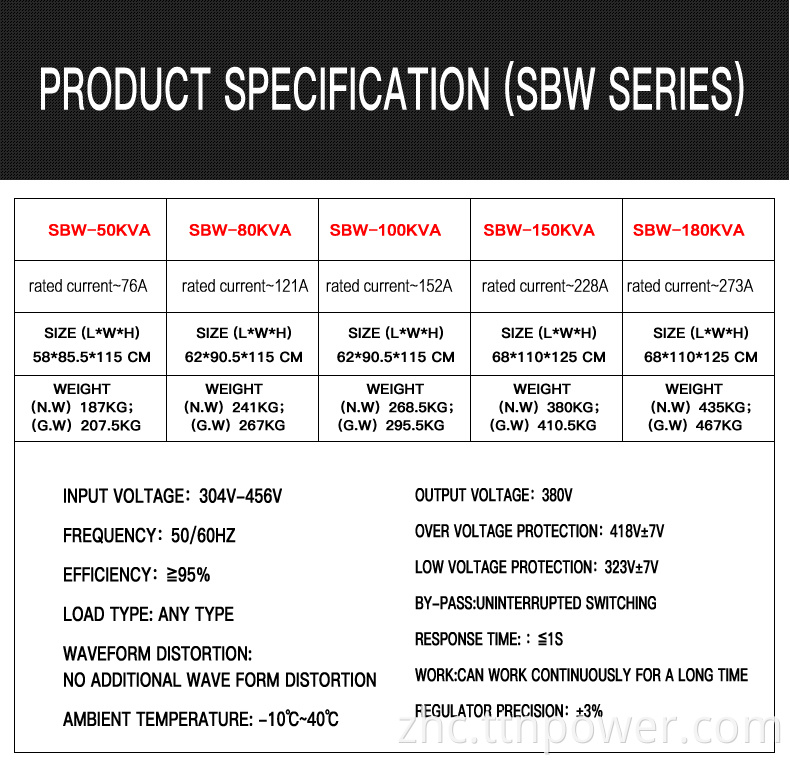 | SBW-50KVA | SBW-80KVA | SBW-100KVA | SBW-150KVA | SBW-180KVA | SBW-200KVA | SBW-250KVA | SBW-320KVA | SBW-400KVA | SBW-500KVA |