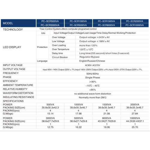 | PC-SCR500VA | PC-SCR1000VA | PC-SCR1500VA | PC-SCR2000VA | PC-SCR3000VA | PC-SCR5000VA | PC-SCR8000VA | PC-SCR10000VA |